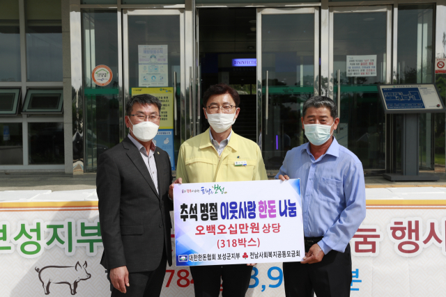 보성군(군수 김철우)은 21일 대한한돈협회 보성군지부(지부장 정연우)에서 다가오는 추석 명절을 맞이해 돼지고기 318박스를 기부했다고 밝혔다.