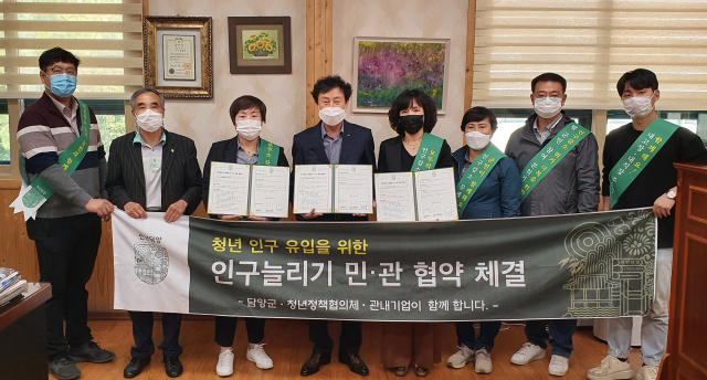 담양군(군수 최형식)과 청년정책협의체는 7일 관내 기업체 4곳과 인구감소 문제 극복과 청년 인구 유입을 위해 인구늘리기 릴레이 민·관 실천 협약을 체결했다.