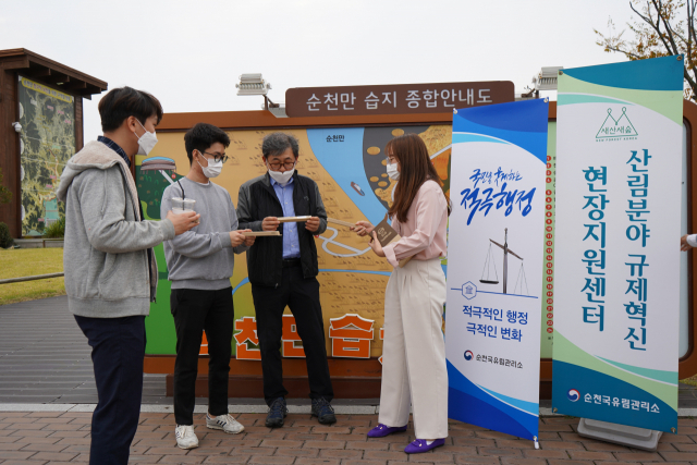 순천국유림관리소는 순천만습지입구에서 ‘찾아가는 산림분야 적극행정 및 규제혁신현장지원센터’를 22일 운영했다고 밝혔다.