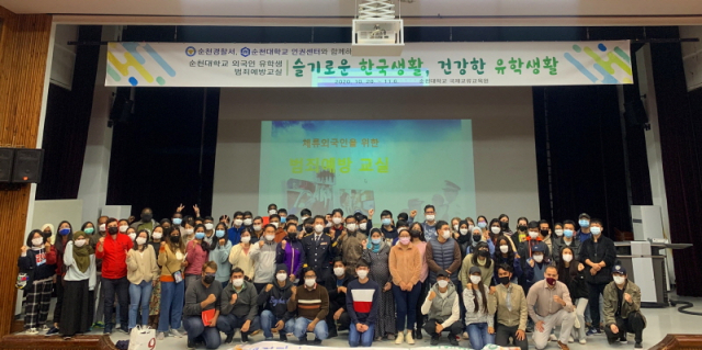 순천대학교는 어학당 및 학위과정에서 수학 중인 미국, 아시아, 유럽권 등 48개국 361명 외국인 유학생의 안전한 한국 생활을 위해, 관련 기관과 적극적으로 협조하며 주기적으로 안전교육 및 상담프로그램을 운영하고 있다.