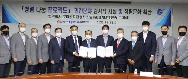 한전KPS는 지난 2017년 4월 국내 최초로 부패방지경영시스템(ISO 37001)인증을 취득했으며, 이에 대한 경험과 노하우를 바탕으로 지난 8월부터 반부패 인프라가 취약한 협력회사에 청렴문화 확산을 위해 ‘청렴 나눔 프로젝트’를 시행하고 있다.