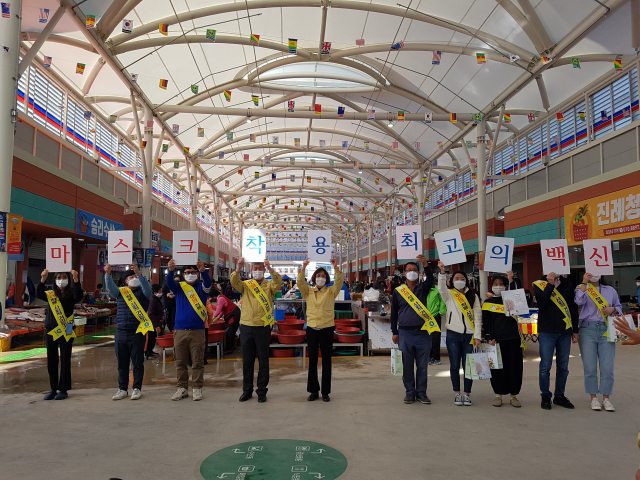 전남 함평군은 12일 함평천지전통시장에서 시장 이용객을 대상으로 마스크 착용 의무화를 알리는 거리 캠페인을 실시했다.