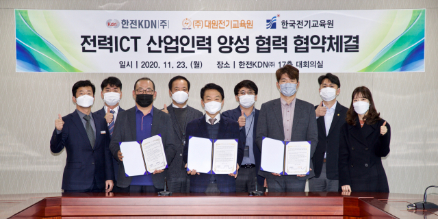 한전KDN은 대원전기교육원, 한국전기교육원과 적극적 인재 육성에 힘을 모을 것을 약속하고 에너지ICT 전문기업의 현장 노하우를 공유하기로 했다.