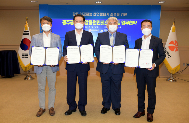 광주광역시는 1일 시청 비즈니스룸에서 B2C 핀테크 전문기업인 ㈜핑거와 인공지능(AI) 초기기업 및 벤처기업 투자사인 ㈜노틸러스인베스트먼트, 알파원인베스트먼트㈜와 광주 인공지능 산업생태계 조성을 위한 97~99번째 업무협약을 체결하고 기업별 법인, 지사, 지점 또는 지역사무소 설립을 통해 광주 인공지능 생태계 조성에 적극 협력키로 했다.