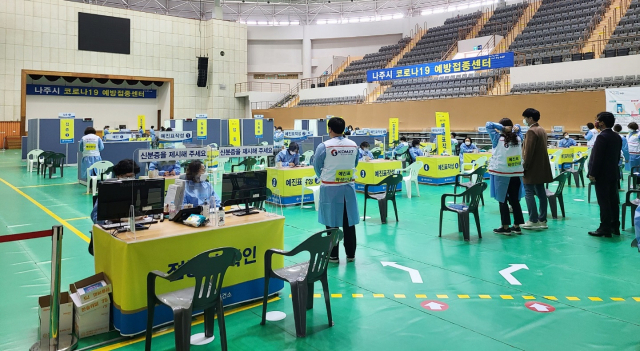 나주시(시장 강인규)는 지난 4월 15일 예방접종센터 개소 이후 이달 5일 기준 만 75세 이상 백신 접종 동의자 1만 720명 중 1차 1만 370명(96.7%), 2차 1만 85명(94.1%)이 백신을 접종했다고 6일 밝혔다.