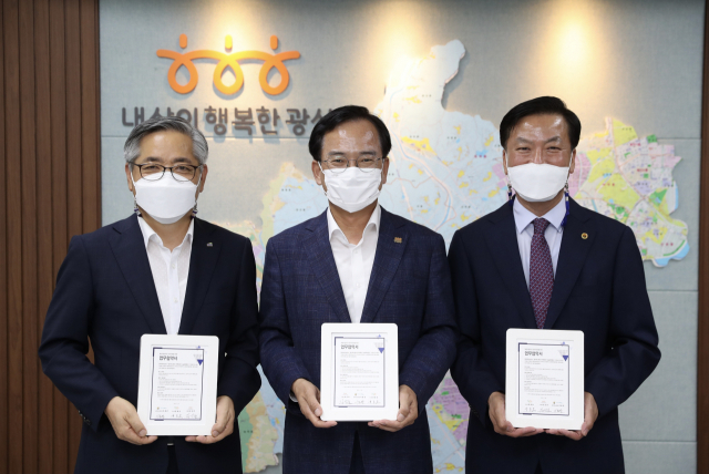 이날 구청 2층 구청장실에서 열린 협약식에는 김삼호 광산구청장, 이종만 광주하나센터장, 양동호 투게더광산 나눔문화재단 이사장 등 각 기관 관계자가 참석했다.