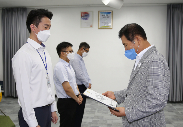 상반기 수상자로 선정된 공무원은 ▲민원행정 제도개선(총무과 김유진) ▲본인서명발급실적(신광면 이건, 월야면 김계희) ▲사전심사 청구제(민원봉사실 송현아) ▲민원후견인제(환경상하수도과 박영철) ▲민원친절 공무원(친환경농산과 김민기, 농업기술센터 최병희, 축제엑스포사업소 임윤홍, 대동면 김희원) 등 5개 분야 9명이다.