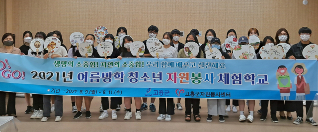 고흥군(군수 송귀근)은 지난 9일부터 11일까지 3일간 고흥군 여성지원센터에서 관내 중고생 82명을 대상으로 ‘2021년도 여름방학 청소년자원봉사 체험학교’를 운영했다.