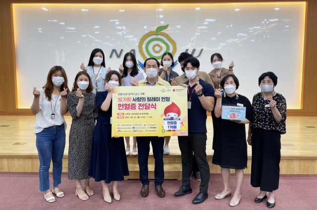 나주시(시장 강인규)는 23일 대한적십자사 광주전남혈액원이 주관하는 ‘빛가람 사랑의 릴레이 헌혈 캠페인’을 통해 기부된 헌혈증 170장을 기탁받았다고 밝혔다.