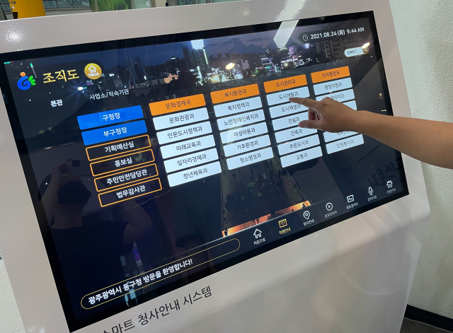 광주 동구(청장 임택)는 코로나19로 인한 비대면 생활환경 변화 속에 청사 방문 시 민원인의 편의 증진을 위한 부서·직원 업무 및 회의 안내를 위한 비대면 스마트 청사안내 시스템을 구축했다고 밝혔다.