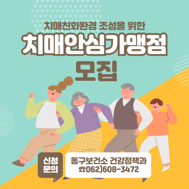 광주 동구(청장 임택)는 치매 환자가 마을 내에서 보다 안전한 일상생활을 할 수 있도록 ‘치매안심가맹점’ 사업을 추진한다고 밝혔다.