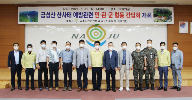 전라남도 나주시(시장 강인규)는 30일 오후 2시 청사 대회의실에서 민관공동위원회 금성산위원회와 환경단체인 녹색연합 주최로 ‘금성산 산사태 예방 관련 민·관·군 합동 간담회’를 개최했다고 밝혔다.