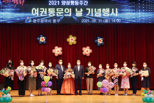 광주 동구(청장 임택)는 양성평등주간(9월1일~7일) ‘여권통문(女權通文)의 날’을 맞아 기념식을 개최하고 지역사회 양성평등 사회 실현에 기여한 유공자 13명에게 표창을 수여했다고 31일 밝혔다.