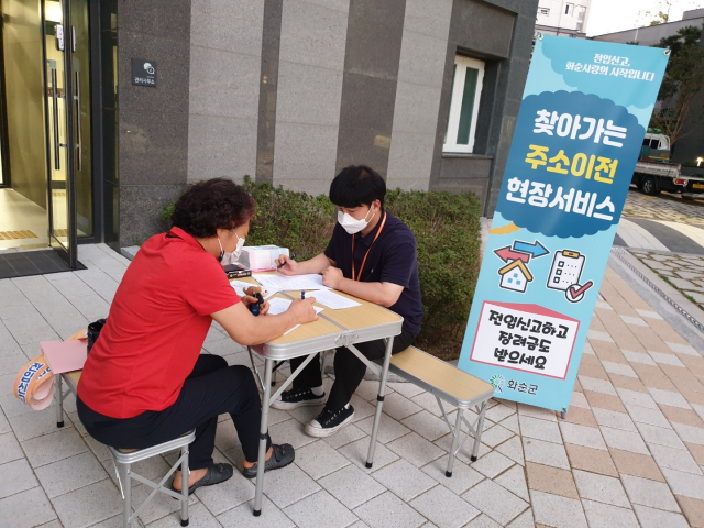 화순군(군수 구충곤)이 최근 잇따른 신축아파트의 입주 시기에 맞춰 입주민에게 ‘찾아가는 주소이전 서비스’를 제공해 큰 호응을 얻었다.