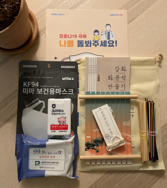 남구정신건강복지센터 홈페이지에 마련된 헬로키트 사용 후기에 따르면 자녀와 부모가 동시에 자가 격리 생활을 하는 경우 실내 체험활동으로 우리나라 전통 공예를 배우는 화문석 만들기가 큰 인기를 누리고 있다.