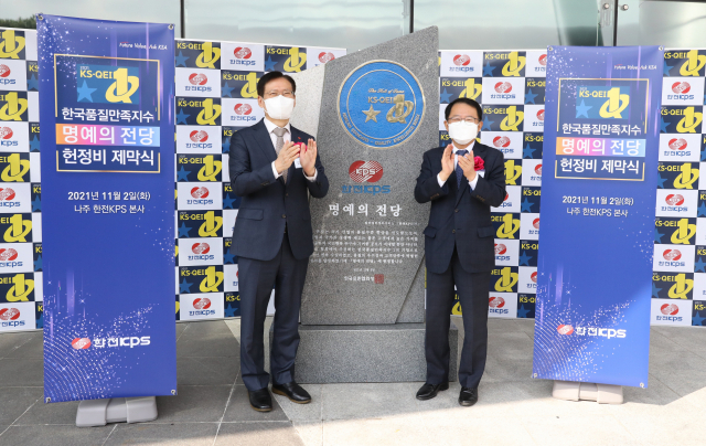 한전KPS는 지난 2011년 첫 도전 이후 올해까지 10년 연속 발전설비 정비서비스 부문에서 1위 기업에 선정돼 명예의 전당에 헌액되는 영예를 안았으며 11월 2일 전남 나주 본사 앞 광장에서 헌정비를 수여받고 제막식을 가졌다.