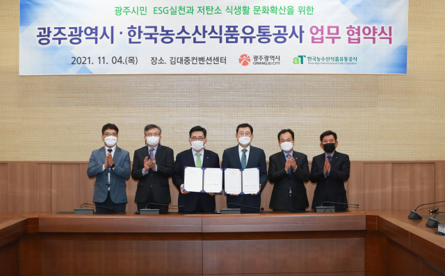 광주광역시는 4일 김대중컨벤션센터에서 한국농수산식품유통공사(사장 김춘진)와 기후위기에 따른 시민들의 인식을 개선하고 탄소중립 생활실천 등을 촉진하기 위한 ‘코리아 그린푸드 데이’ 업무협약을 체결했다.