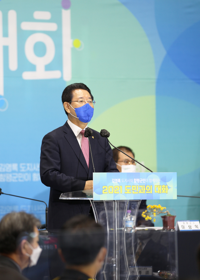 함평군은 15일 김영록 전라남도 지사와 함평군민이 함께하는 ‘2021 도민과의 대화’가 이날 오전 함평국민체육센터에서 열렸다고 밝혔다.