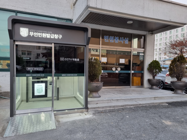 담양군은 군민들의 민원서류 발급 편의를 위해 담양읍사무소 민원실 출입구에 무인민원발급기 옥외부스를 설치했다고 23일 밝혔다.