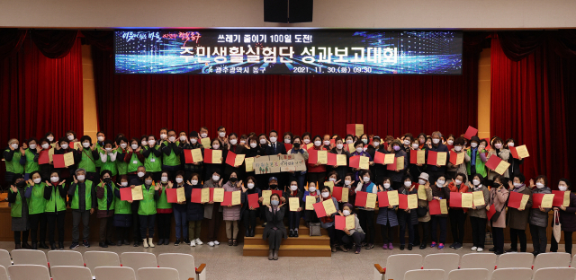 광주 동구(청장 임택)는 30일 (사)광주시민환경연구소와 함께 운영한 ‘광주 동구 쓰레기줄이기 100일 도전! 생활실험단’ 성과보고회를 열었다.