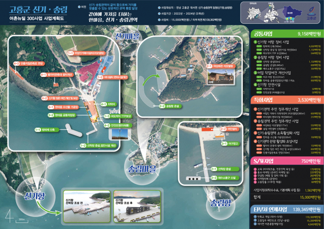 ‘어촌뉴딜 300사업’은 어촌의 혁신성장을 돕는 지역밀착형 생활SOC(사회간접자본) 사업이며 어촌의 혁신성장을 돕는 역할을 수행해 낙후된 선착장 등 어촌의 필수 기반시설을 현대화하고 지역별 특성을 반영하는 어촌·어항 통합개발 사업이다.