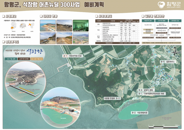 한편 함평군은 4년 연속 ‘2022년 어촌뉴딜 300사업’에 선정됨으로써 총사업비 335억 원을 투입해 지속 가능한 어촌·어항 재생기반 구축에 나서고 있다.