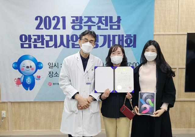 화순전남대병원 암센터에서 열린 평가대회에서 광산구는 유선 통화, 멀티미디어 문자(MMS) 발송, 우편 발송 등 적극적인 안내로 검진을 활성화하고 지하철 내 스크린도어 홍보, 로고라이트 설치, 현수막 및 배너 설치 등 코로나19 상황 속에서 비대면 검진 수검을 독려한 성과를 인정받았다.