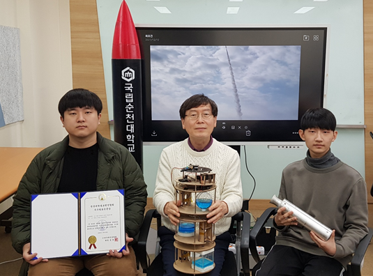 순천대 이희남 교수 연구팀은 학술대회에서 주저자인 우주항공공학과 석사과정 최모건 학생과 공동 저자인 학사과정 김지웅 학생이 ‘고도 100m 이상에서의 로켓 Roll 축 제어’ 논문을 통해 자체 설계하고 3D 프린팅으로 제작한 반작용휠을 장착해 로켓 동체의 회전을 방지하는 내용의 연구 결과를 발표한 결과 그 우수성을 인정받아 ‘우수논문상’을 수상하는 성과를 올렸다.