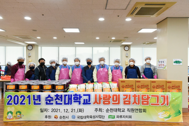이번 행사를 주최한 순천대 직원연합회는 매년 사랑의 김치 나눔 행사를 열고 지역 홀몸 노인을 비롯해 20여 개 불우 시설에 김치와 쌀 등 부식을 전달하고 있다. 또한 요양원 봉사와 연탄 나눔과 같은 다양한 사회공헌 활동을 이끌며 대학 구성원의 참여를 독려하고 있다.