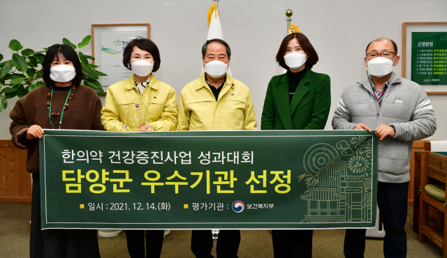 담양군(군수 최형식)은 한의약 건강돌봄사업 및 건강증진사업 성과대회에서 다양한 건강증진사업 운영을 통해 지역민 삶의 질 향상에 기여한 공로를 인정받아 우수기관으로 선정돼 보건복지부 장관 표창을 수상했다.