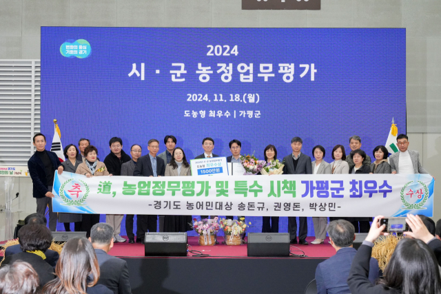 가평군은 지난 18일 수원컨벤션센터에서 열린 ‘제29회 경기도 농업인의 날’ 기념식에서 ‘2024년 시군 농정업무평가 및 특수시책’ 부문 최우수기관으로 선정됐다고 밝혔다. 이와 함께 ‘경기도 농어민대상’에서도 3개 부문(임업, 가금 및 기타가축, 여성농어민)을 수상하는 영예를 안았다.