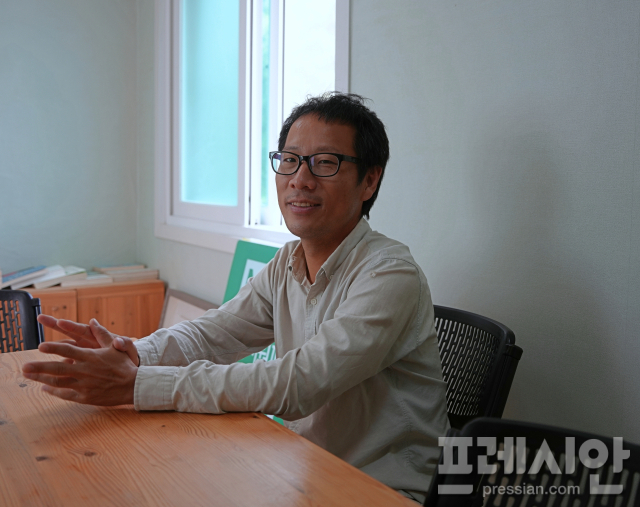 ▲30일 광주 서구 화정동 시교육청 인근 주택가 2층 학벌없는 사회를 위한 시민모임 사무실에서만난 박고형준 상임활동가.2025.09.30ⓒ프레시안(김보현)