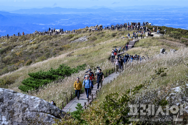 추석 연휴 마지막 날인 9일 무등산 정상이 개방돼 탐방객 3800여명이 평소에 볼 수 없었던 무등산의 장엄한 비경을 눈에 담았다.