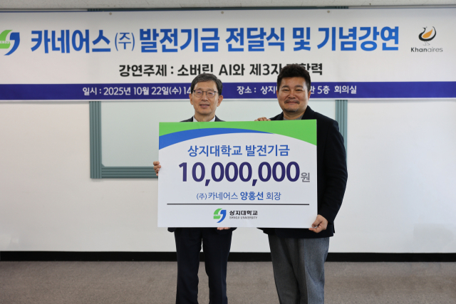 상지대(총장 성경륭)는 22일 본관 2층 회의실에서 ㈜카네어스로부터 발전기금 1천만 원을 전달받았다.