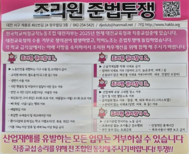 교총은 “급식 조리원을 비롯한 교육공무직의 근무환경 개선 필요성에는 전적으로 동의하며, 교육 당국은 이들의 처우 개선을 위한 책임을 다해야 한다”고 전제했다.