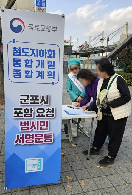 11일 군포시에 따르면 시는 범시민추진위원회와 함께 군포 철도지하화의 국가계획 반영을 위한 시민 서명운동을 본격 전개하고 있다. 현재 서명이 진행 중이며, 시는 오는 23일까지 전 시민 참여를 목표로 서명지를 모아 이달 말 국토부에 전달할 계획이다.