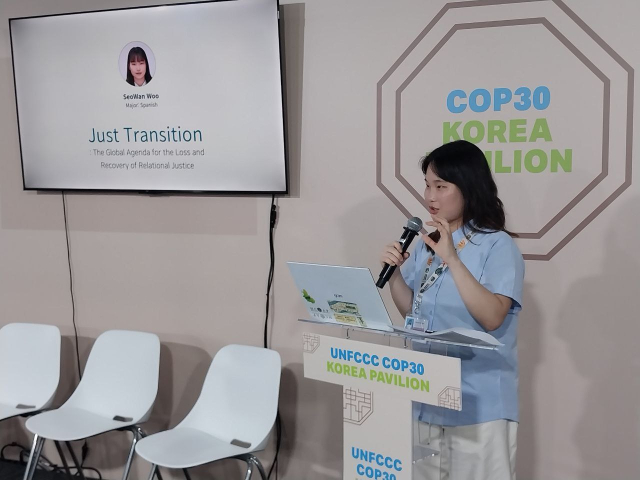 지난 13일 세션에서 우서완 학생은 영광과 고흥 어민들이 해상풍력 발전 사업 과정에서 어업권을 잃고도 충분한 보상을 받지 못한 사례를 소개하며, 한국의 기후와 에너지 정책이 경제성 중심으로 기울어 지역 공동체의 권리를 보호하지 못하고 있다고 지적했다. 그는 정의로운 전환이 단순한 금전적 보상을 넘어 개인과 공동체의 존엄, 토착민과 지역민의 권리, 국가의 주권적 권리를 함께 고려하는 관계적 정의의 회복을 중심에 두어야 한다고 강조했다. 배제된 목소리가 협상 테이블로 돌아올 수 있도록 구조를 재설계해야 한다는 것이다.
