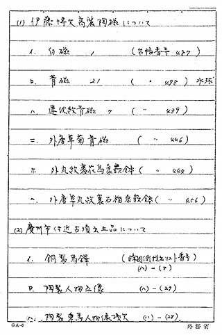 한국 측: 제3항목으로서는 '소위 통감, 총독 등에 의하여 반출된 문화재'가 있는데, 그들에 의한 반출은 그들이 행사할 수 있었던 권력을 배경 삼아서 비로소 달성할 수 있었다고 생각하므로 소위 총독부에 의하여 반출된 것에 준하여 반환을 청구하는 것이다. 예컨대, '이토 히로부미'에 의한 고려자기의 수집, '데라우치 마사타케'에 의한 전적, 기타 미술품이 있었던 것으로 알고 있는데, 여기에 대한 귀측의 의견을 알려 주기 바란다.