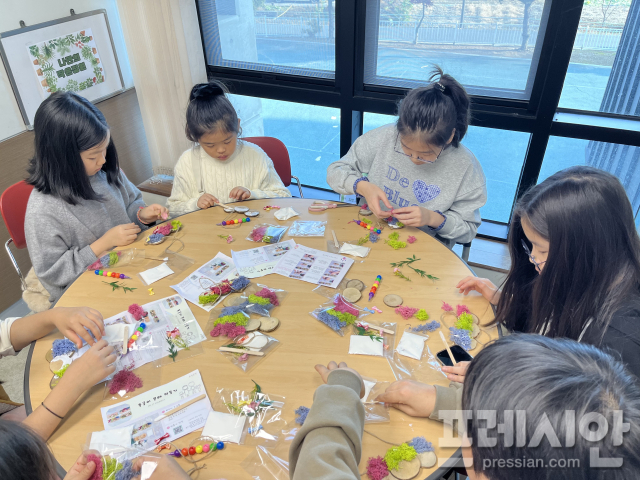 아이들은 폭신한 촉감과 다채로운 색감을 지닌 자연 소재 스칸디아모스를 사용해 자신만의 개성을 담은 문패를 직접 만들어 보며 창의적 경험을 쌓았다.