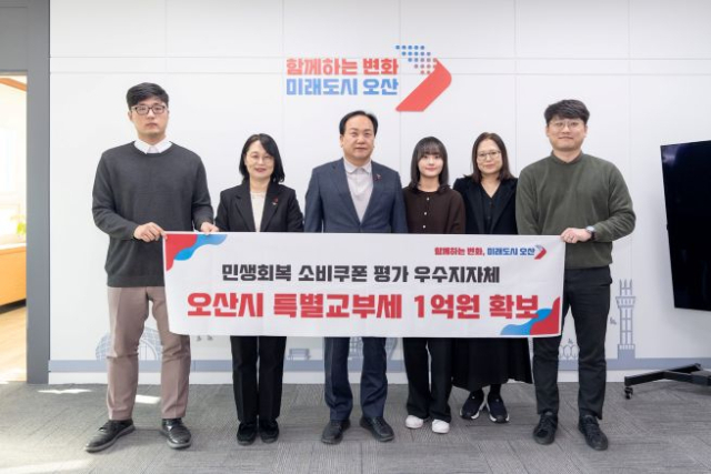 경기 오산시는 행정안전부 주관 '민생회복 소비쿠폰 집행 평가'에서 우수 지자체로 선정돼 특별교부세 1억 원을 확보했다고 19일 밝혔다.