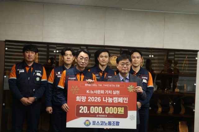포스코노동조합(위원장 김성호)은 지난 7일 오후 4시 포항MBC를 방문해 ‘희망 2026 나눔캠페인’ 이웃돕기 성금 2천만 원을 기탁했다.