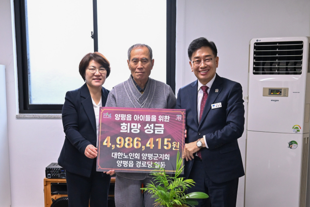 전진선 양평군수는 “어르신 한 분 한 분의 마음이 모여 아이들에게는 희망이 되고, 지역사회에는 세대 간 신뢰와 연대의 온기를 전해주었다”며 “기탁된 성금은 양평읍 관내 도움이 필요한 아동들을 위해 투명하고 뜻깊게 사용하겠다”고 밝혔다.