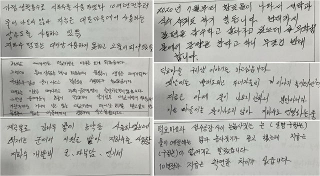 마을 물은 말라가는데, 누구도 이게 무엇 때문인지 조사하지 않는다. 주민들이 어떤 피해를 겪는지 조사한 곳도 지난 30년 간 없었다. 표 위원장은 "주민들이 직접 피해를 조사하고 공론을 모으고 민원을 제기해도, '법대로 했다'는 식의 답만 돌아온다"며 "대체 무엇을 해야 하느냐"고 가슴을 쳤다.