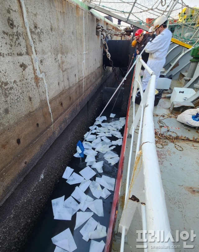 해경 관계자는 "선박에서 발생하는 기름 유출 사고는 해양환경에 심각한 피해를 줄 수 있다"며 "해상에 기름 등 오염물질을 유출할 경우 '해양환경관리법'에 따라 5년 이하의 징역 또는 5000만 원 이하의 벌금에 처할 수 있다"고 전했다.