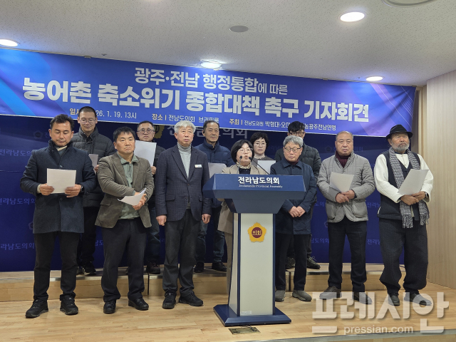 전농 광주전남연맹과 박형대 전남도의원(진보당, 장흥1), 오미화 전남도의원(진보당, 영광2)은 19일 오후 전남도의회에서 '광주전남 행정통합에 따른 농어촌 축소 및 소외 종합대책 촉구' 기자회견을 열고 이같이 주장했다.