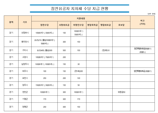아울러 상위법 개정에 발맞춰 지원 대상도 확대했다. 기존 수당 지급 대상에서 제외됐던 지원공상군경과 지원공상공무원 등을 새롭게 포함해 더 많은 보훈 가족이 혜택을 받을 수 있도록 제도를 개선했다.
