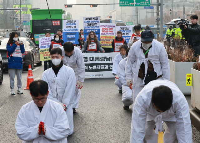 1월 1일 새해를 맞자마자 청와대 비정규직 노동자 200여 명이 해고됐다. 윤석열이 용산으로 대통령실을 옮기면서 청와대 개방사업이 시작됐다. 이때 일하게 된 청소·경비·안내·조경 직종의 노동자들이다. 지난 12월 29일 청와대 비정규직 노동자들은 해고를 3일 앞두고 삼보일배를 했고, 세상에 이 노동자들의 투쟁이 알려졌다.