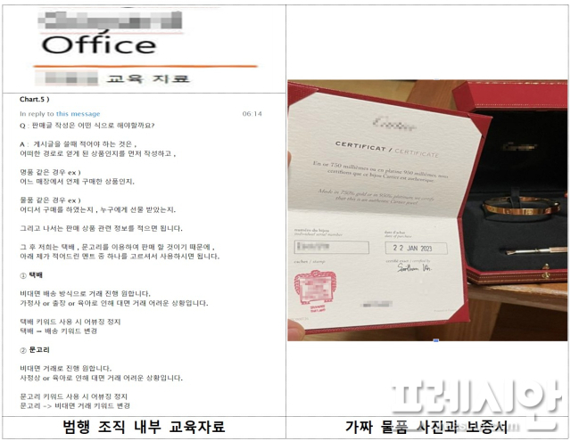 이들 조직이 판매한다고 속인 물품은 백화점 상품권을 비롯해 야구·공연 티켓, 휴대전화, 게임 아이템, 쌀, 골드바, 심지어 중고차까지 다양했다. 피해액은 수만 원의 소액부터 많게는 800~900만 원에 이르렀다.