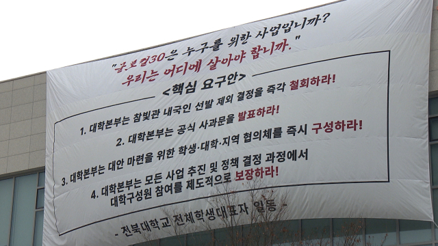 이번 논란은 전북대가 국책사업인 ‘글로컬대학 30’ 추진 과정에서 외국인 유학생 유치를 확대하면서 촉발됐다. 대학은 약 1800명 규모의 참빛관을 외국인 유학생 전용 기숙사로 지정했지만, 이 과정에서 내국인 학생 배정 축소 가능성이 제기되며 반발이 확산됐다.