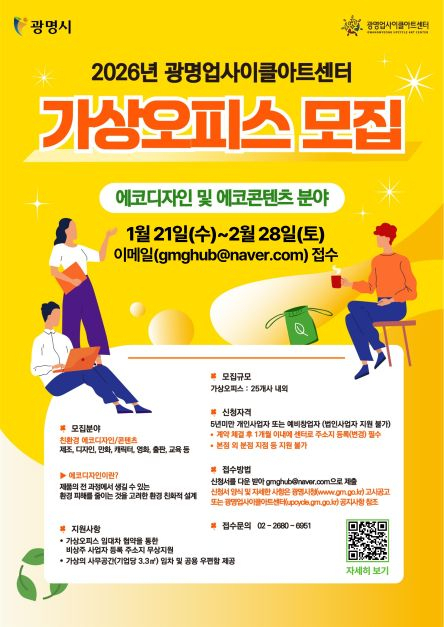 경기 광명시 광명업사이클아트센터는 ‘2026년 상반기 가상오피스 지원사업’ 입주 기업을 다음 달 말까지 모집한다고 27일 밝혔다.